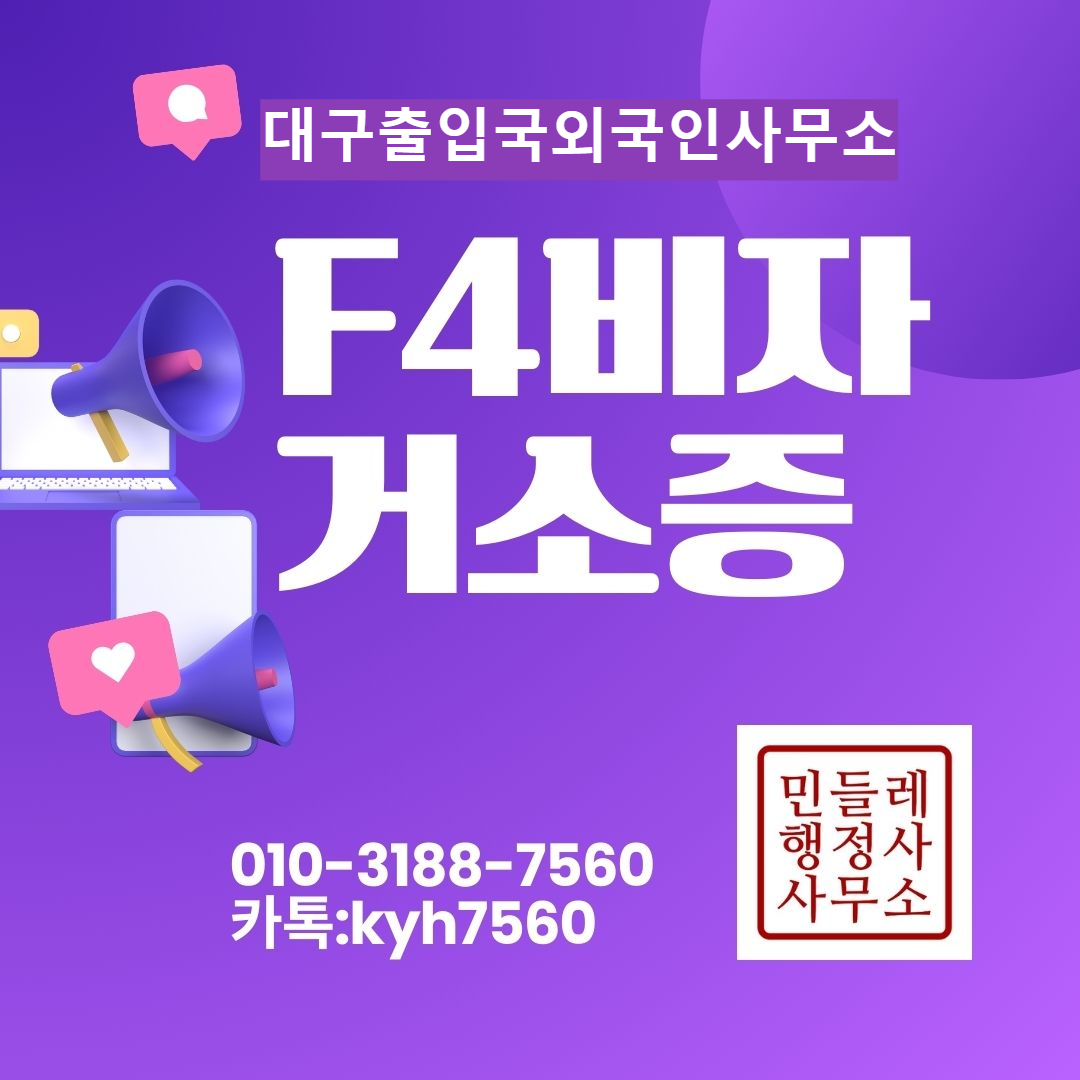 #F4비자연장 #대구출입국 #재외동포비자 #거소신고기간연장 #F4비자급행 #출입국행정사 #재외동포체류 #F4연장서류 #대구출입국외국인사무소 #민들레행정사