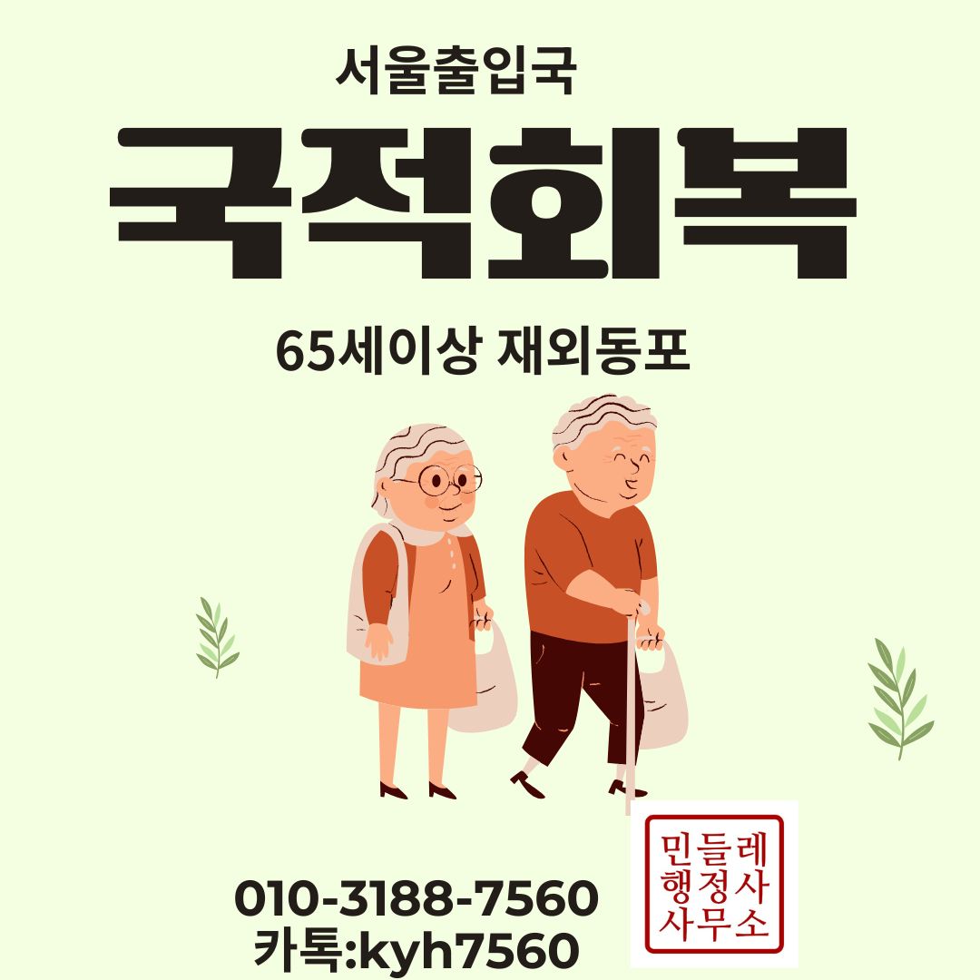 #국적회복신청 #재외동포국적회복 #65세이상복수국적 #서울출입국외국인청 #국적회복절차 #재외동포행정사 #국적법 #거소증 #국적회복대행 #민들레행정사