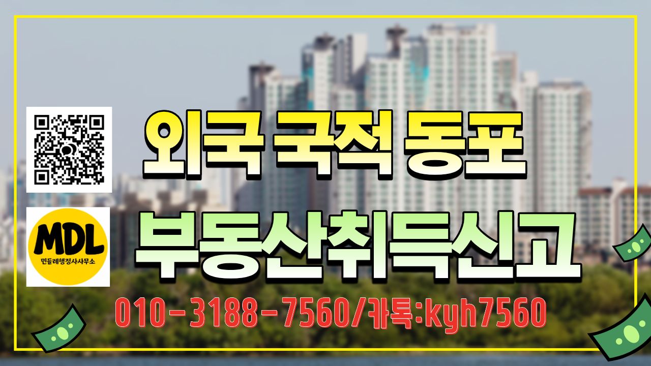 #외국인부동산취득 #재외동포부동산등기 #계속보유신고 #토지취득허가 #부동산등기용등록번호 #민들레행정사무소 #고영휴행정사 #외국인과태료방지 #재외동포법 #한국부동산투자
