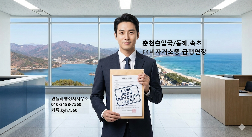 #F4비자연장 #춘천출입국 #동해출입국 #속초출입국 #거소증연장 #F4비자급행 #체류지변경신고 #민들레행정사사무소 #고영휴행정사 #비자연장성공사례