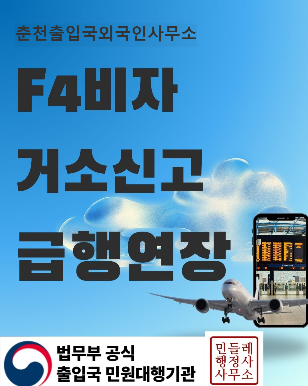 #F4비자연장 #춘천출입국 #재외동포F4 #거소신고기간연장 #F4급행 #출입국대행 #체류연장전문 #민들레행정사 #외국인체류관리 #F4비자전문